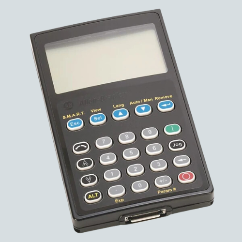 Interface Module for PowerFlex, featuring an LCD Display and a complete Numeric Keypad. Designed for handheld or local use, with the option for drive mounting.