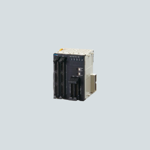 A motion control module designed for DIN rail mounting, operating with a 24VDC power supply.