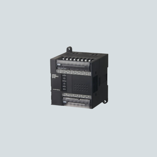 A Programmable Logic Controller (PLC) designed with a power supply ranging from 100 to 240 VAC. It features 12 inputs at 24 VDC, 8 relay outputs with a capacity of 2 A each, and has a program capacity of 2,000 steps with a data memory of 2,000 words.