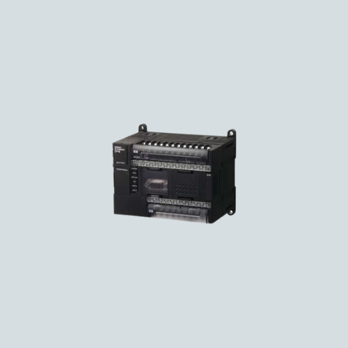 A Programmable Logic Controller (PLC) designed with a power supply ranging from 100 to 240 VAC. It features 18 inputs at 24 VDC, 12 relay outputs with a capacity of 2 A each, and has a program capacity of 8,000 steps with a data memory of 8,000 words. Additionally, it includes an RS-232C port.