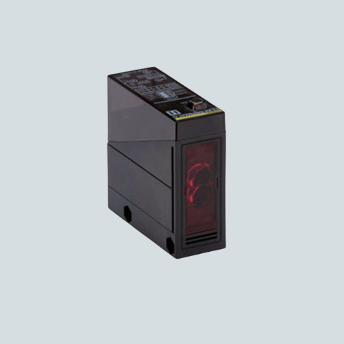Retro-reflective photoelectric sensor with a detection range of 4 meters, compatible with both AC and DC power, and featuring a relay output.