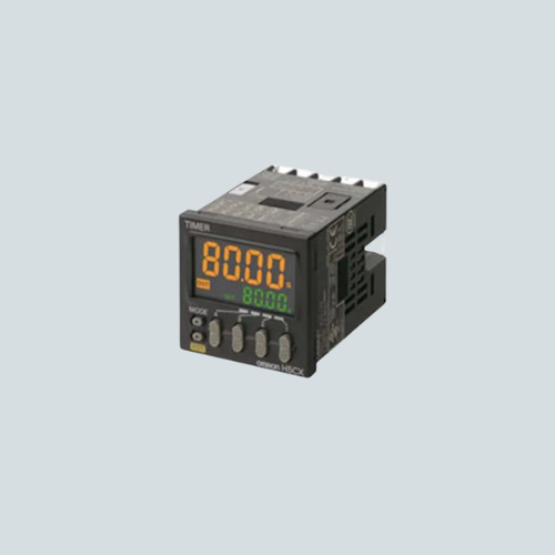 A plug-in timer with an 11-pin configuration, DIN48x48mm size, and IP66 protection rating. It features 4 preset and 4 actual time digits, supporting a multi-range operation from 0.01 seconds to 9999 hours across 10 selectable ranges. This multifunctional timer allows for NPN/PNP/no voltage input selection and comes with an SPDT relay output capable of handling 5A, with a power supply range of 100-240 VAC.