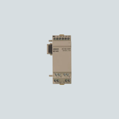 An I/O expansion unit with four 24 VDC inputs and four relay outputs, each capable of handling 5 amperes.