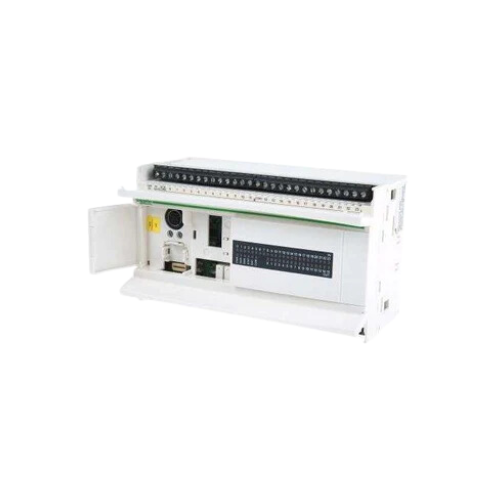 Twido Compact PLC base with a 100-240 V AC power supply, supporting 24 digital inputs at 24 V DC and providing 16 digital outputs.
