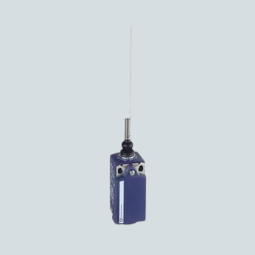 XCKP limit switch with a cat's whisker actuator, featuring 1 normally closed (1NC) and 1 normally open (1NO) contact, snap action, and an M16 connector.