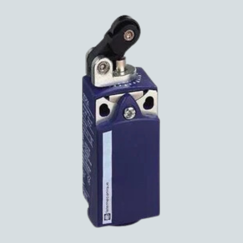Limit switch XCKP: Plastic roller lever plunging horizontally, equipped with 1 normally closed (NC) and 1 normally open (NO) contact, featuring snap action and Pg11 threading.