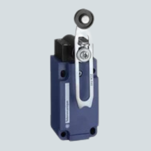 XCKS limit switch with thermoplastic roller lever, variable length, 1NC+1NO contacts, snap action, and M20 threaded entry.