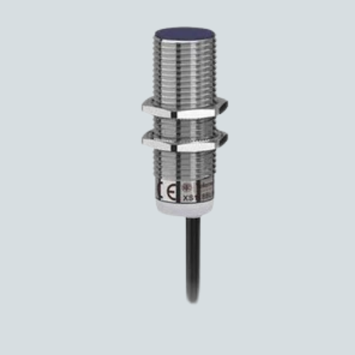 XS1 M18 inductive sensor with a length of 53mm, made of brass, a detection range of 5mm, operates with a voltage range of 12-24VDC, and comes with a 2m cable.