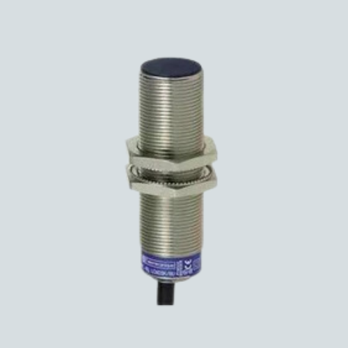 Inductive sensor XS5 M12: L53mm, made of brass, Sn2mm sensing distance, operates on 12-48VDC, with a 2m cable.