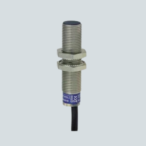 XS6 M12 inductive sensor with a length of 53mm, made of brass, a sensing distance (Sn) of 4mm, and designed to operate on 12-48VDC. It comes with a 2-meter cable.