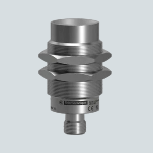 XS9 M30 inductive sensor with a 64mm length, full SS 303 construction, 40mm sensing distance, 12-24VDC, and M12 connector.