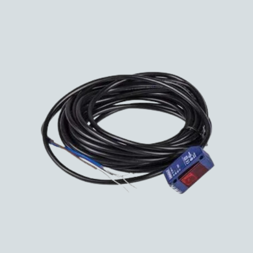 Photoelectric sensor XUM: Multi-function type, sensing range Sn 0-10m, operates on 12-24VDC, with a 2m cable.